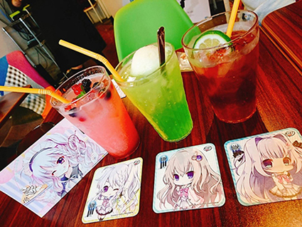 米倉さんが結城希亜のアイスティー、アキラさんが九條都のメロンソーダ、私が新海天のイチゴカルピスですね。